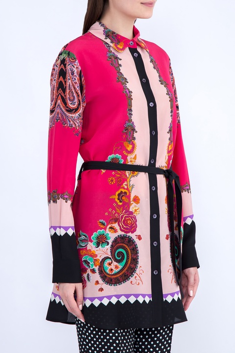 Блузка из шелка яркого оттенка с мотивом пейсли и поясом