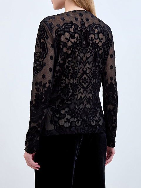 Полупрозрачный лонгслив с фактурным узором из шерстяного велюра