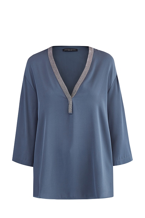 Блузка с V-образным вырезом и декором из мерцающих фирменных бусин