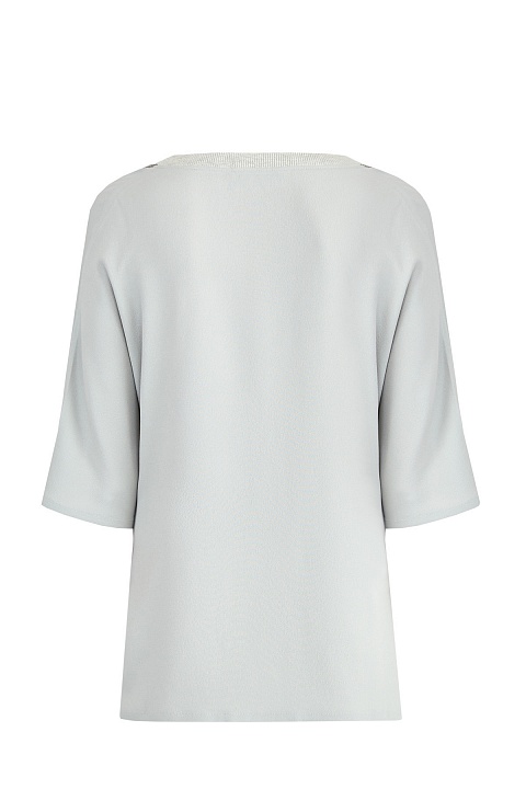Свободная блуза из шелка с вязаным воротом и мерцающей вышивкой