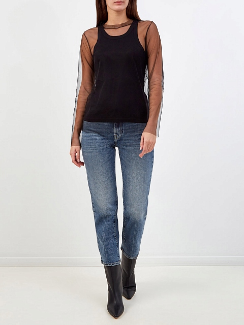 Топ из легкого полупрозрачного тюля с длинными рукавами