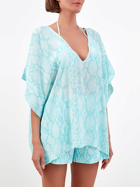 Блуза из вискозного крепдешина с V-образным вырезом и принтом