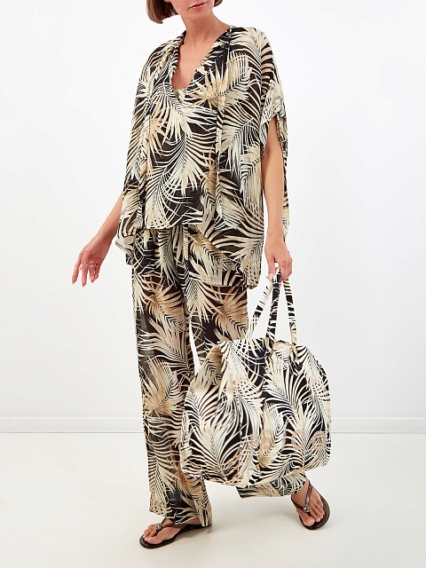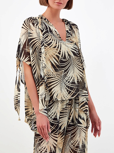 Легкая блуза из вискозы и шелка с тропическим принтом