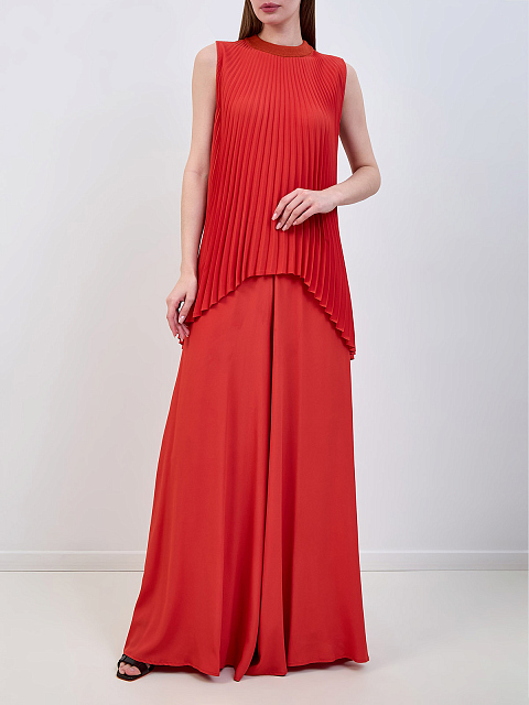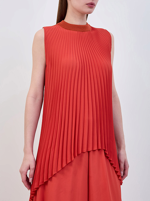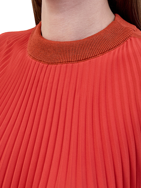 Блуза-плиссе из ацетата и шелка с трикотажным воротом