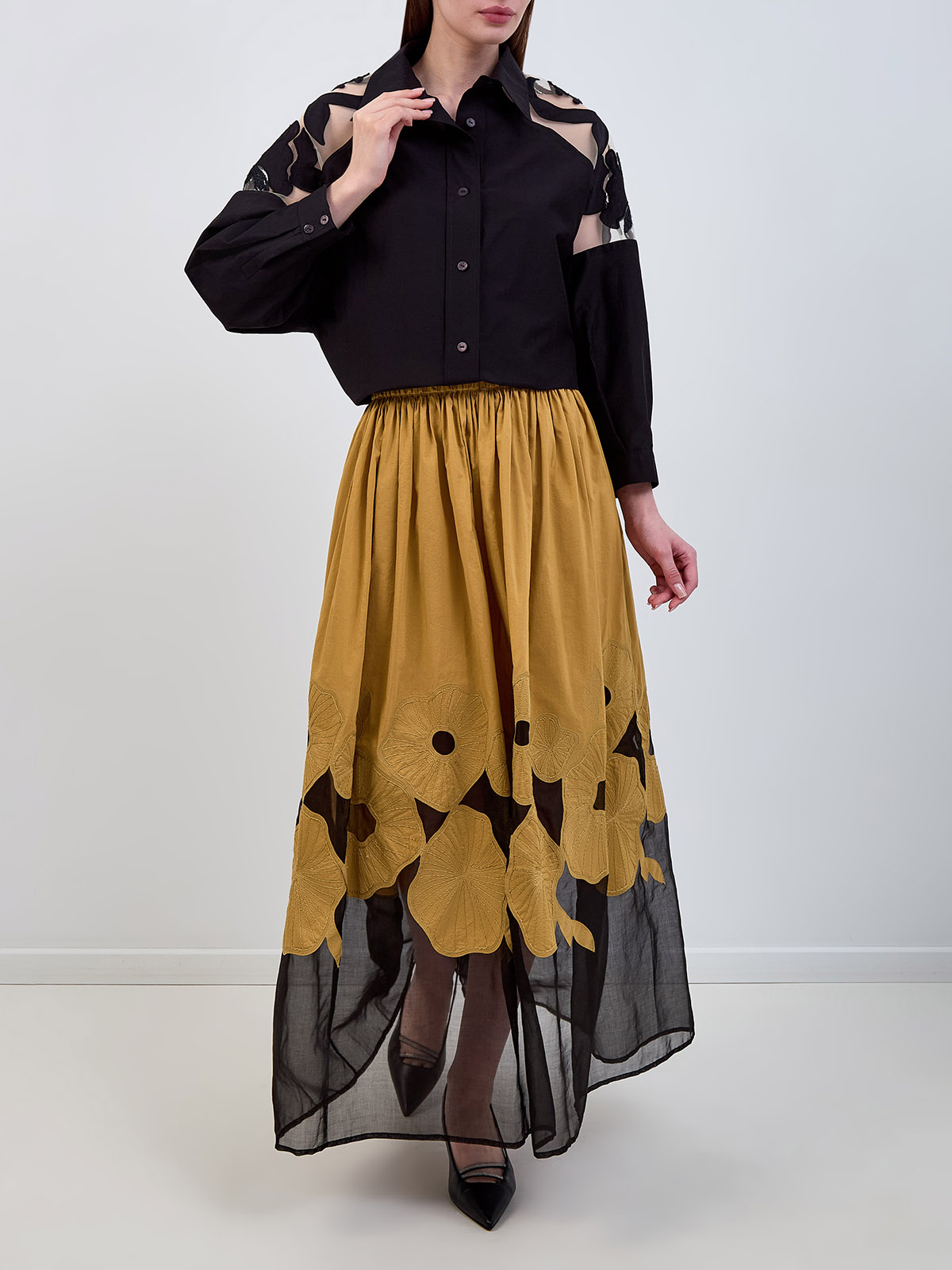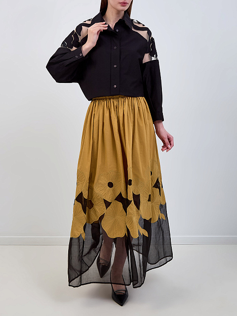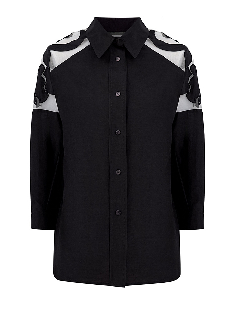 Блуза из хлопка и шелка с аппликацией и вышивкой букле