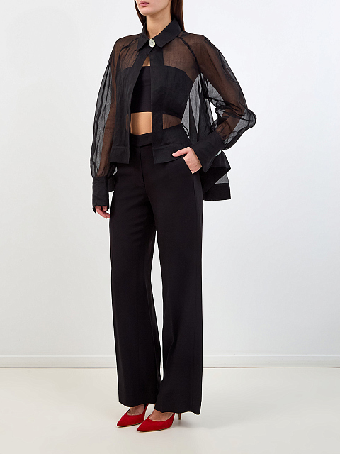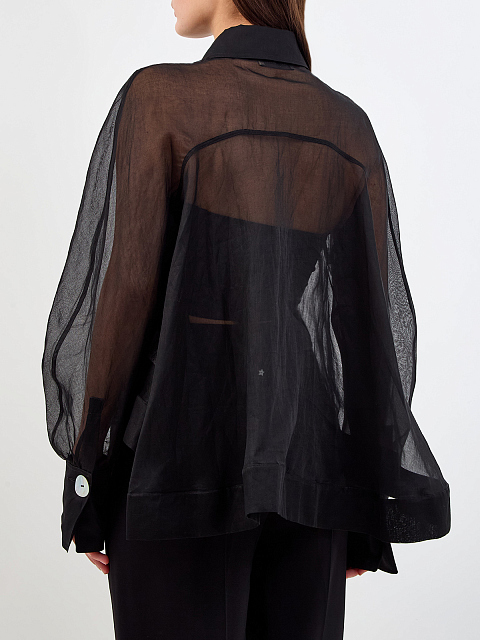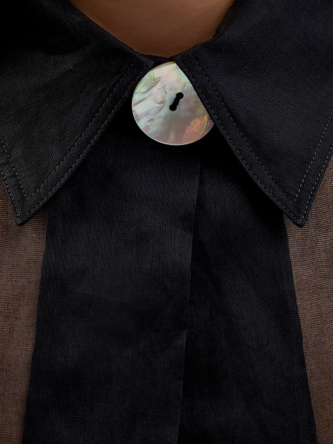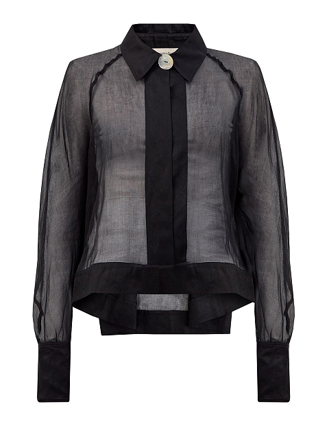 Полупрозрачная блуза из хлопкового шифона с перламутровой пуговицей