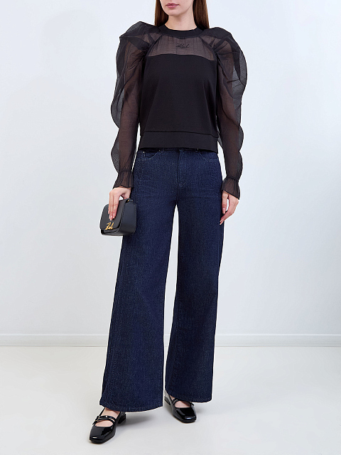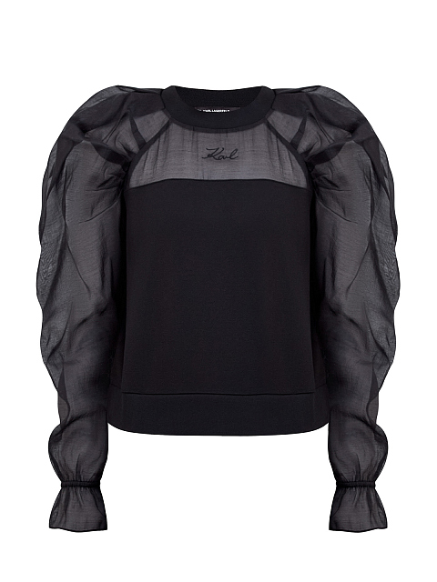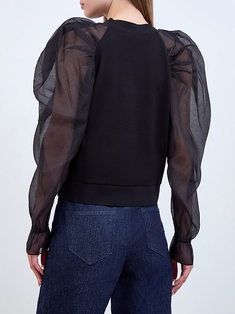 Блуза с объемными рукавами из полупрозрачного шифона