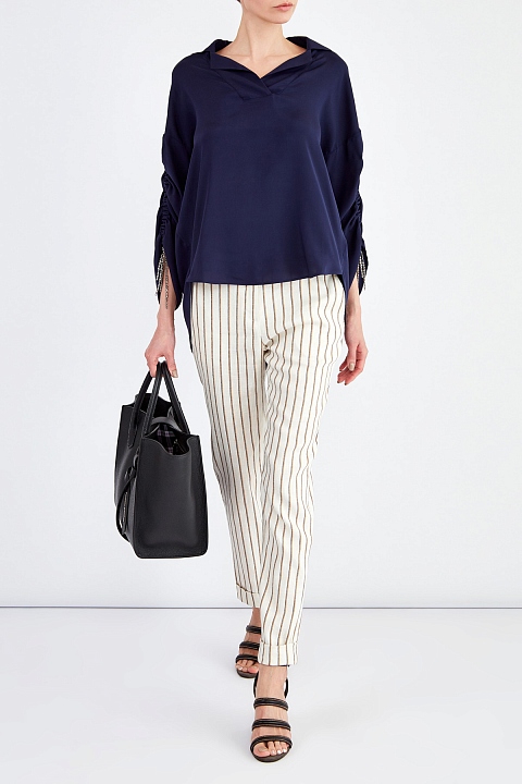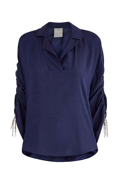 Блуза из шелка с присборенной отделкой и подвесками на рукавах