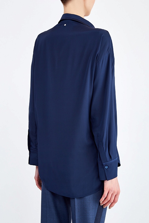 Минималистичная блуза свободного кроя из шелка с отложным воротом