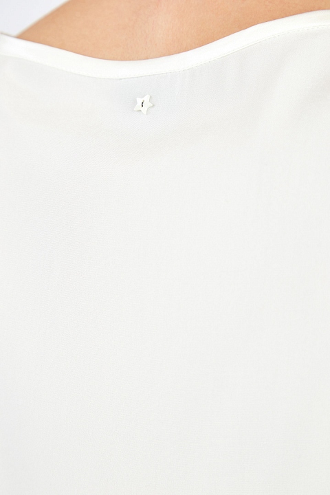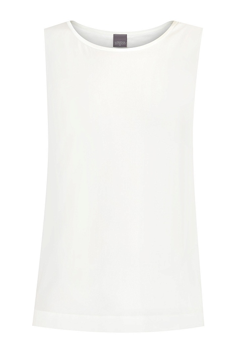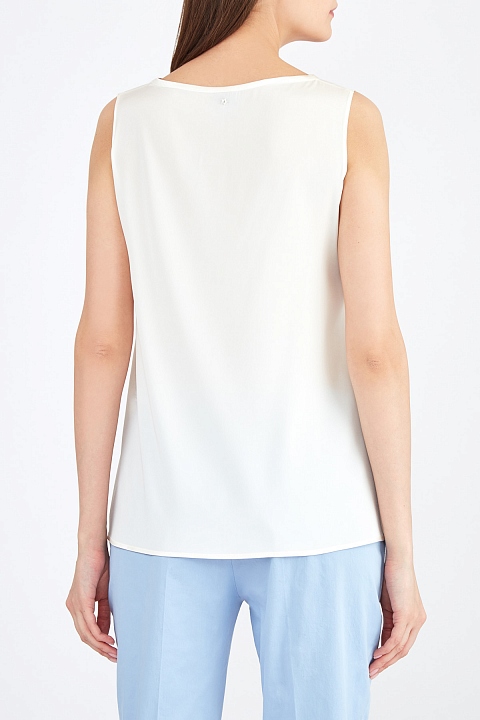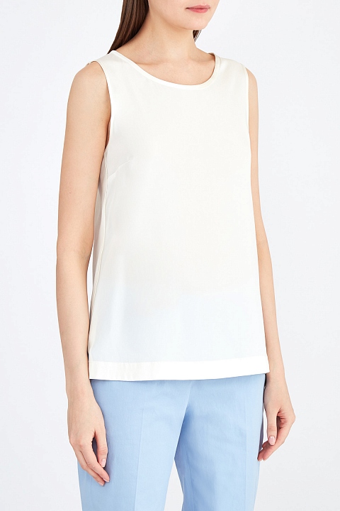 Лаконичный топ от Lorena Antoniazzi создан из чистого шелка в мягком сливочном оттенке с благородным жемчужным блеском по поверхности. Фирменный стиль подчеркивают минималистичные акценты в виде атласных полос по проймам и круглому вырезу горловины, а также миниатюрная деталь в виде звезды на спинке. Детали: разрезы в боковых швах, вытачки для посадки по фигуре. Сделано в Италии.