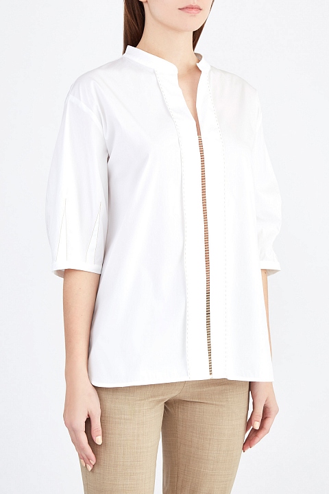 Блуза из хлопка с оригинальной прострочкой контрастной нитью