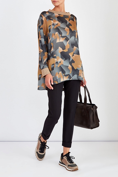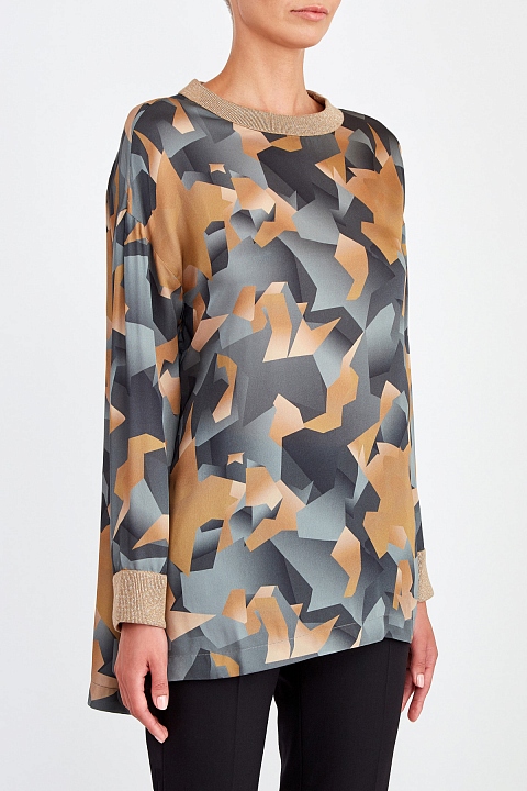 Блуза из шерсти и вискозы с абстрактным принтом