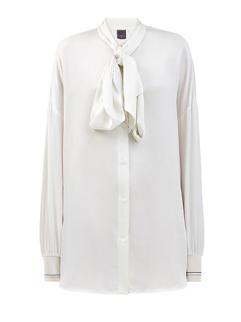 Блуза из струящегося шелкового сатина с лентой-бантом