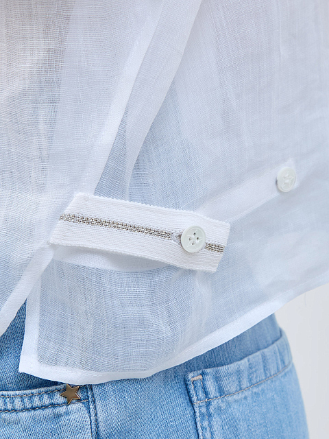 Блуза из легкой хлопковой органзы с трикотажными деталями