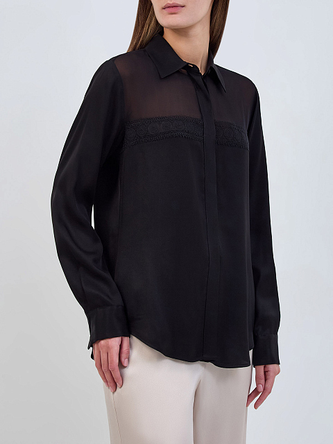 Блуза из шелка и ацетата с кружевной вставкой