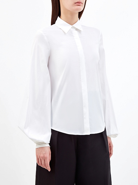 Блуза из тонкого хлопка с длинными объемными рукавами