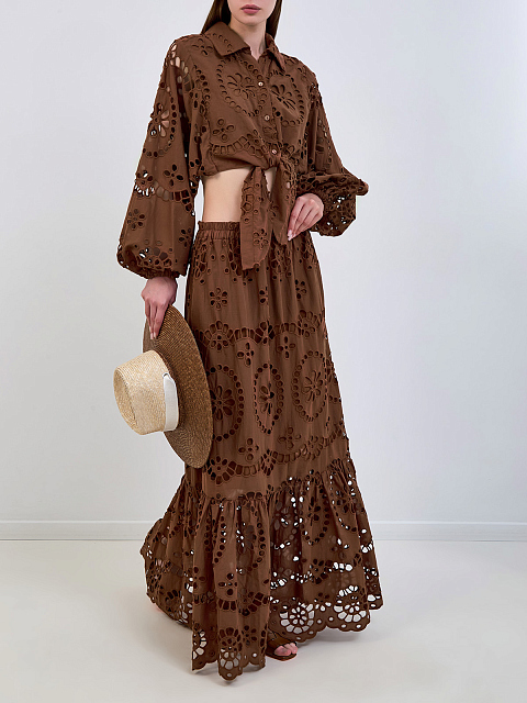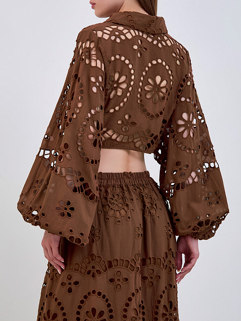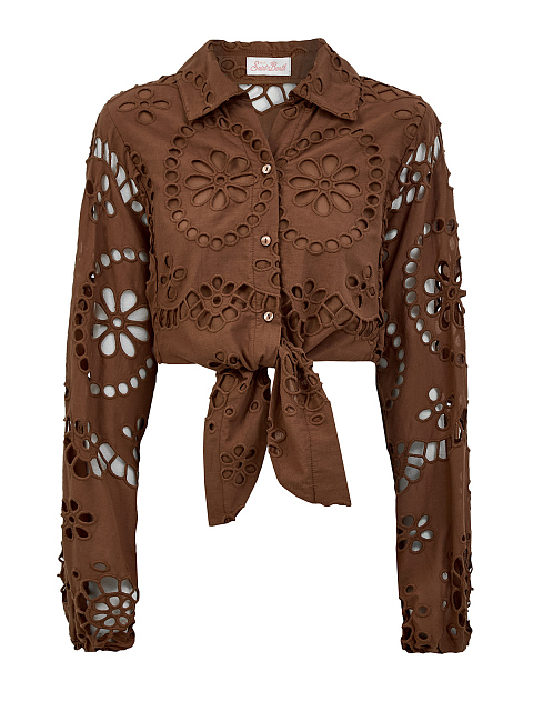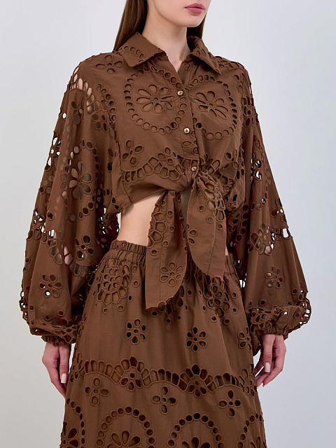 Кроп-рубашка из хлопкового кружева Sangallo с завязками