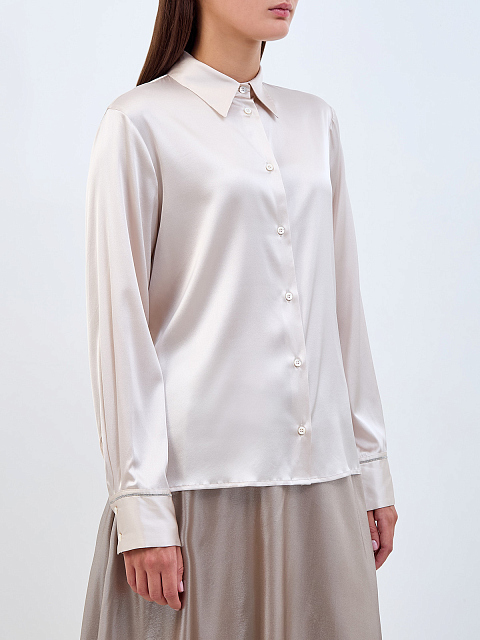 Шелковая блуза с ювелирной окантовкой Punto Luce на манжетах