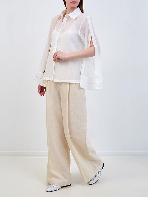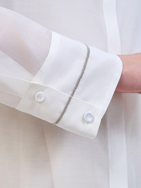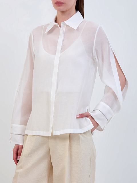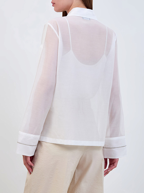 Блуза из полупрозрачного хлопка и шелка с окантовкой Punto Luce