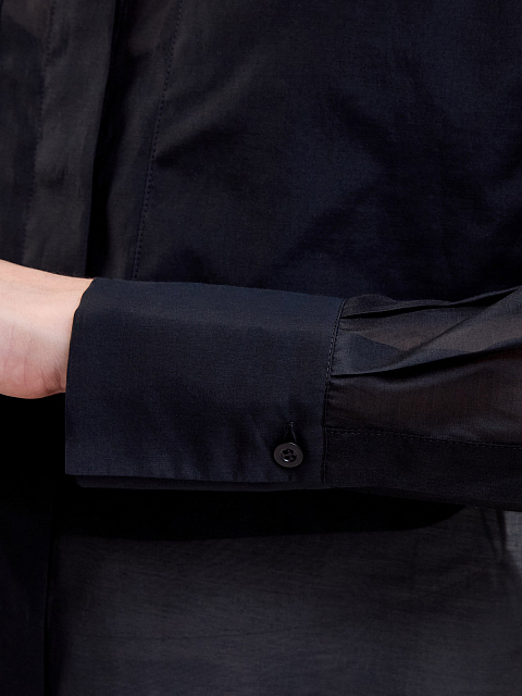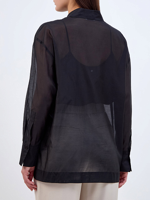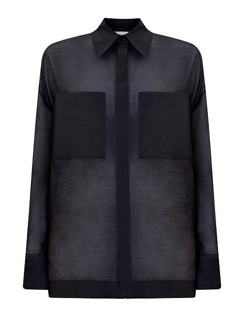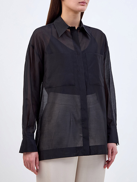 Блуза из хлопкового и льняного шифона с накладными карманами