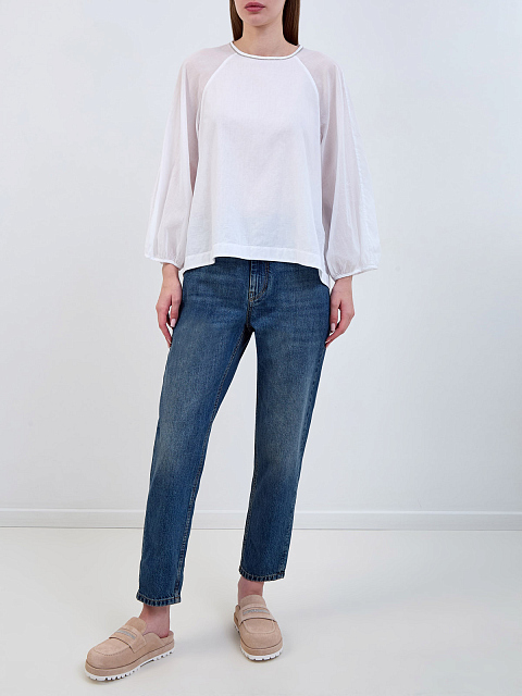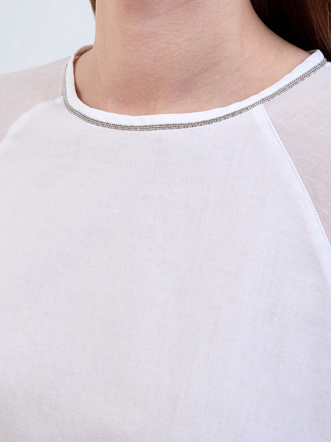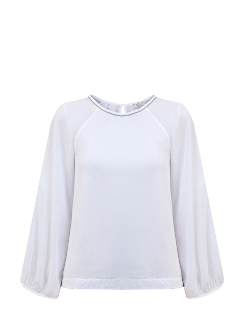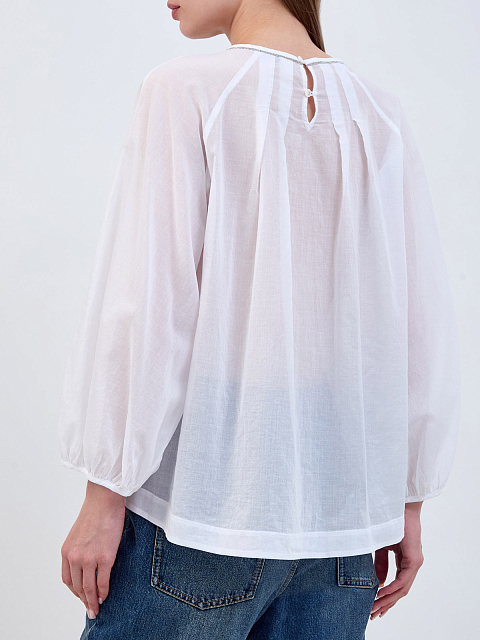 Блуза из полупрозрачной хлопковой вуали с деталью Punto Luce