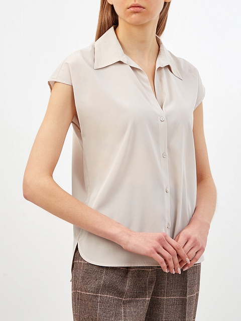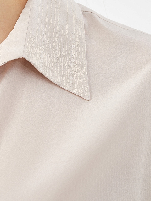Блуза из струящегося шелка с вплетенными пайетками на вороте