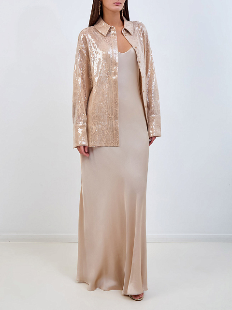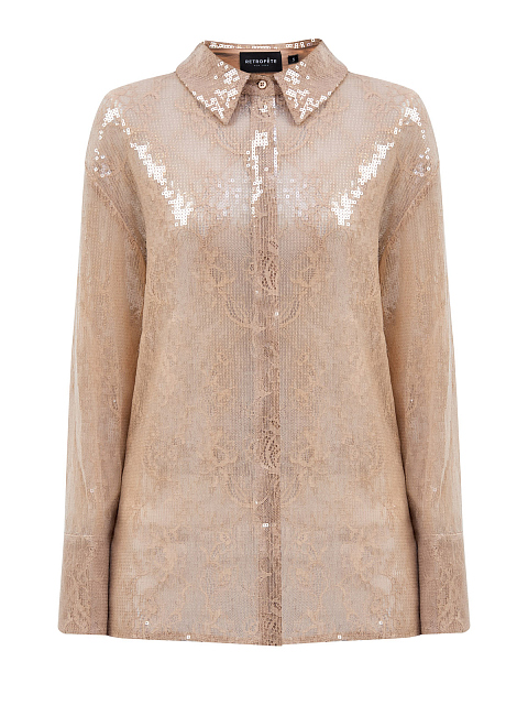 Женственная блуза Ariana от Retrofete придаст непринужденный изысканный шик любому образу — как вечернему, так и повседневному. Модель в актуальном нюдовом оттенке создана из тонкой кружевной ткани и дополнена блеском полупрозрачных пайеток по всей поверхности изделия. Детали: застежка на планку с пуговицами, отложной ворот, спущенный плечевой шов.
