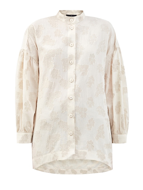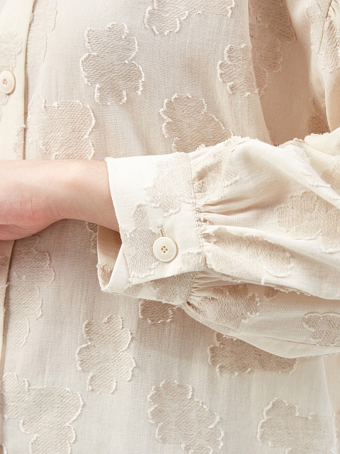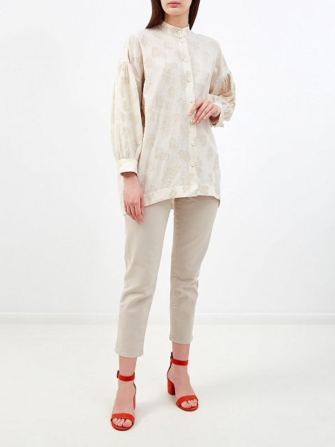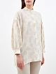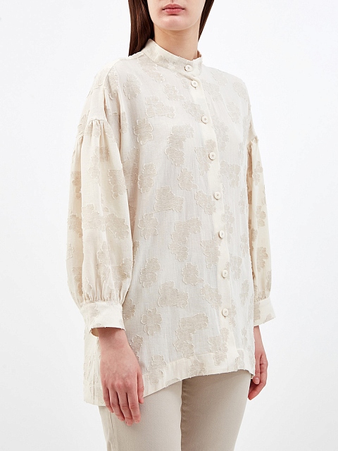 Блуза из хлопка и льна с объемными рукавами и декором в тон