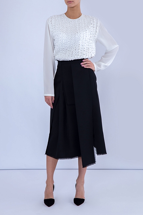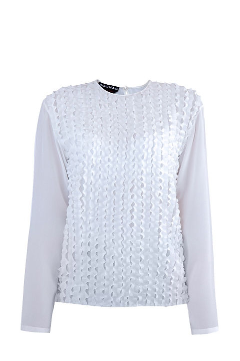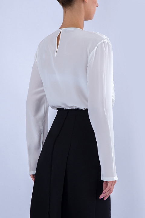 Блузка с ажурными полосками шелка-рюшами на передней панели