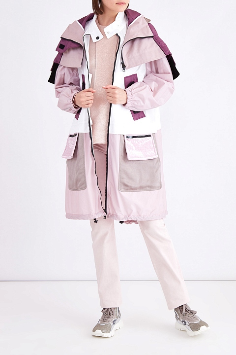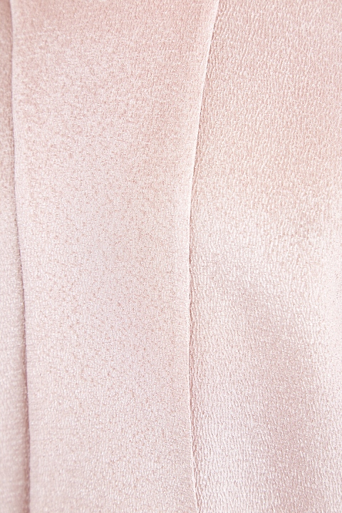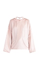 Эффектная блузка свободного кроя из весенне-летней коллекции Valentino создана из тисненой ткани ламе в серебристо-розовом оттенке. Нежное мерцание материалу придают волокна люрекса и оригинальная текстура. Изделие со спущенной линией плеч и длинными рукавами декорировано воротником-халтером поверх округлого выреза декольте с застежкой на пуговицу. Объемный шов по кромкам рукавов и прострочка двойной иглой по нижнему краю завершают образ в стиле спортшик. Сделано в Италии.
