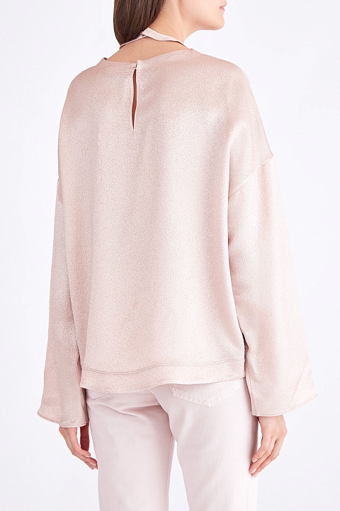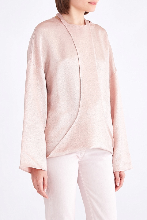 Oversize-блуза из металлизированной ткани ламе с воротом-халтером