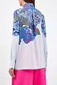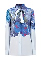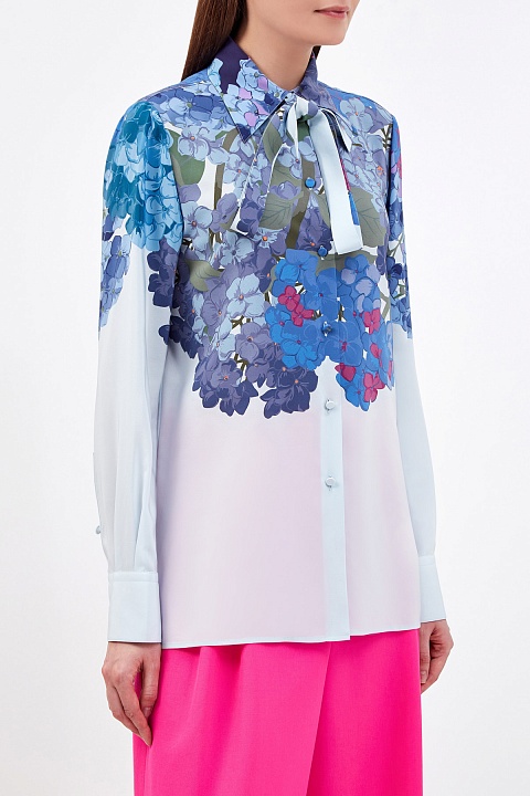 Шелковая блуза из крепдешина с принтом Macro Ortensia и бантом