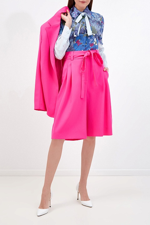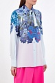 Блуза из шелкового крепа от Valentino. Фирменный принт Macro Ortensia задает романтическое настроение всему аутфиту. Элегантный образ подчеркивает продуманный до мелочей дизайн: пуговицы обтянуты тканью в тон, воротник дополнен объемным бантом. Детали: манжеты на рукавах, слегка удлиненный расслабленный крой. Сделано в Италии.