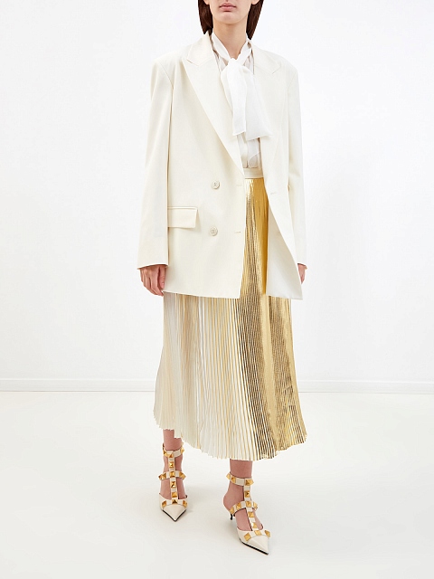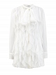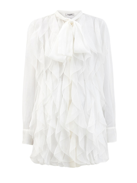 Воздушная блуза из шелкового шифона от Valentino представлена в универсальном молочно-белом оттенке. Летящая текстура материала подчеркивает струящиеся объемные оборки, а ворот с завязками-лентами вносит штрих аристократического шика. Детали: свободный силуэт, объемные длинные рукава, застежка на пуговицы. Сделано в Италии.