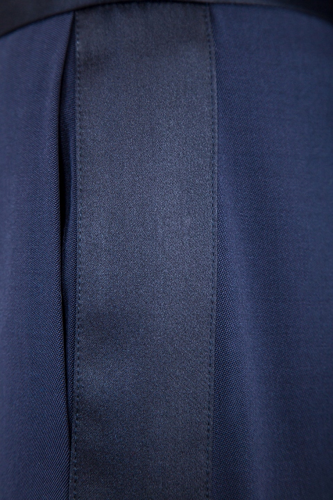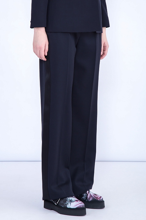 Широкие брюки из шерсти с отделкой деталей атласной тканью