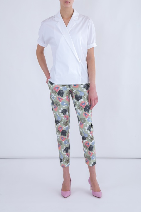 Укороченные брюки-слим с прошитыми стрелками и акварельным принтом
