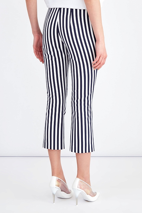Укороченные брюки-клеш из фактурного хлопка в морской гамме