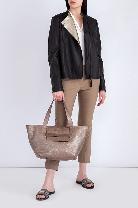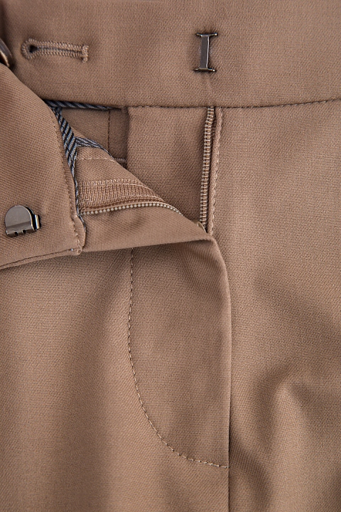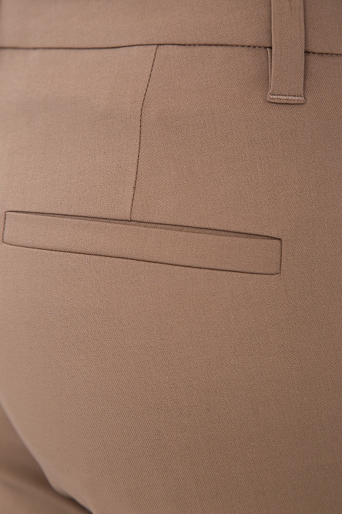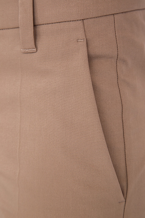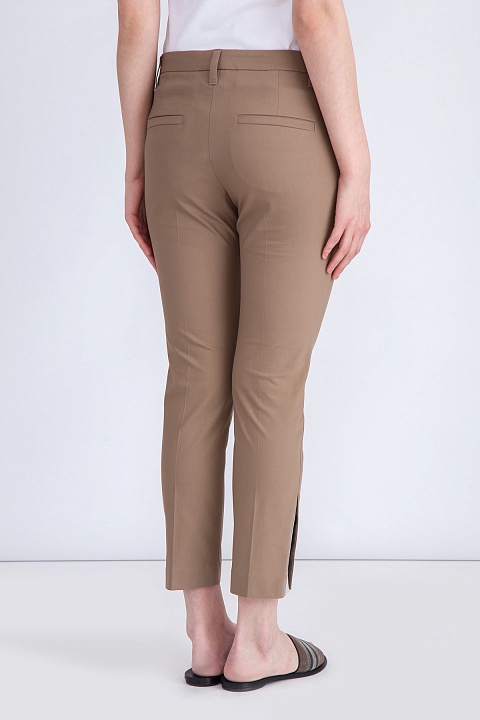 Изящно женские брюки-дудочки Tailored Cigarette Brunello Cucinelli с посадкой на заниженной линией талии и зауженными брючинами. Модель создана из хлопковой эластичной саржи орехового цвета и украшена деталью Contrast Split на боковых швах у кромок. Сделано в Италии.