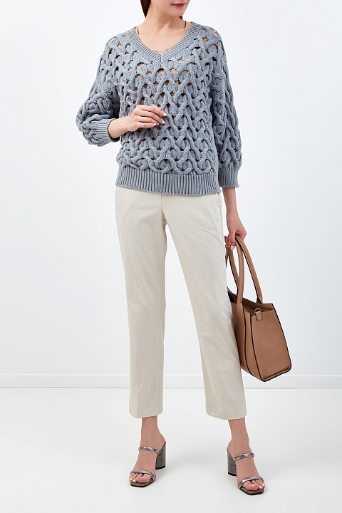 Брюки из хлопка-stretch с ювелирной вышивкой Мониль