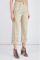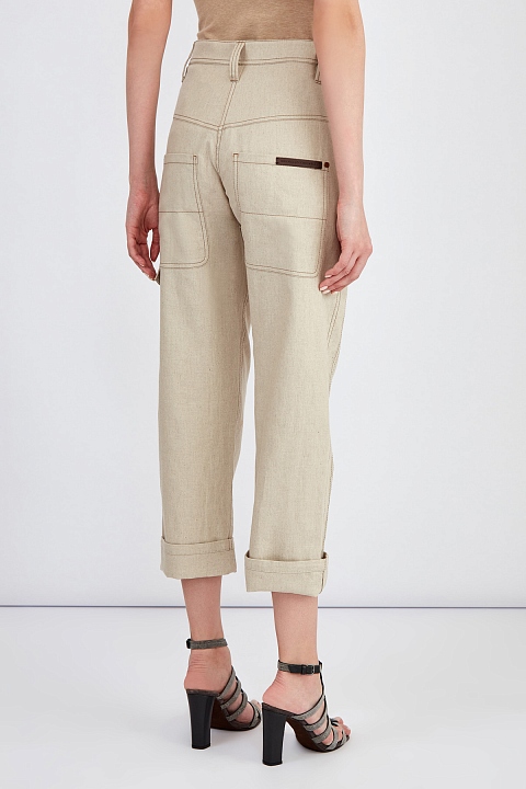 Брюки из льна и хлопка в стиле карго с отворотами и объемными швами