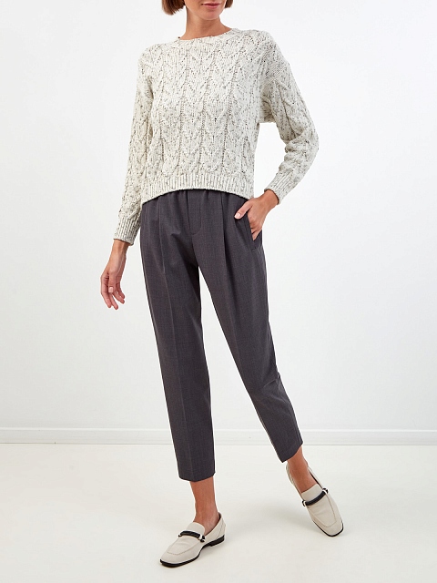 Укороченные брюки Baggy Cigarette из шерсти с блестящими шлевками