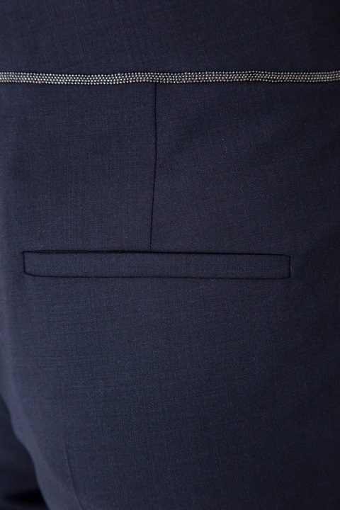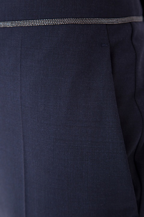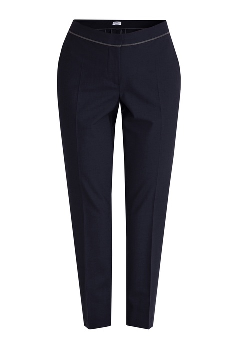 Брюки-дудочки Tailored Cigarette Brunello Cucinelli из тонкой смесовой шерсти Tropical Luxury. Этой укороченной модели характерны классические линии и детали в виде конструктивных стрелок, фронтальных французских и прорезных задних карманов, потайной застежки. Стиль бренда прослеживается в украшении Shiny Belt с бусинами «монили» на притачном поясе. Сделано в Италии.