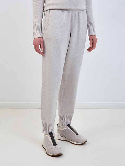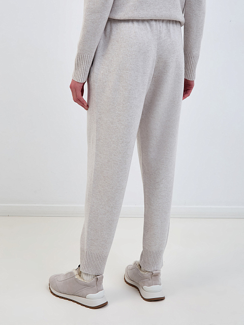 Брюки из шерсти, кашемира и шелка с отделкой английской вязки