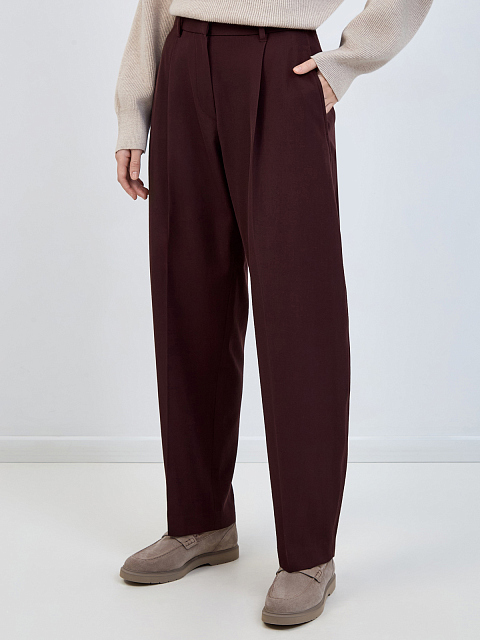 Брюки из габардина с защипами и мерцающей шлевкой Мониль