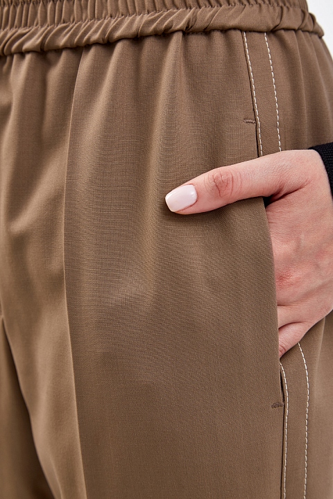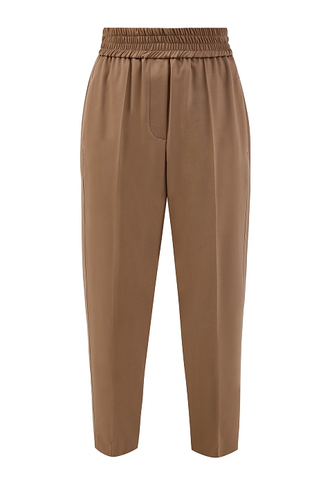 Брюки Baggy из гладкой шерсти с эластичным поясом
