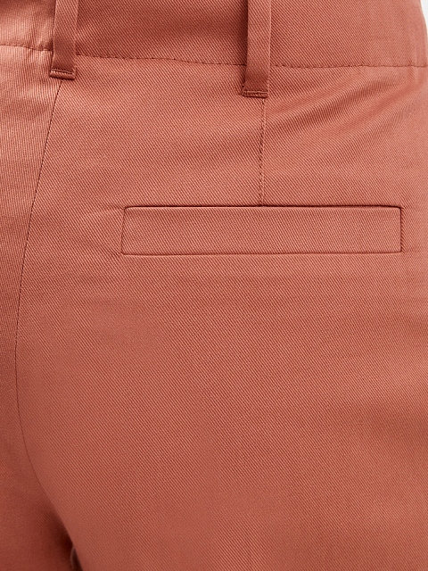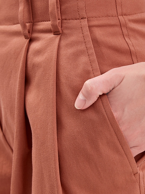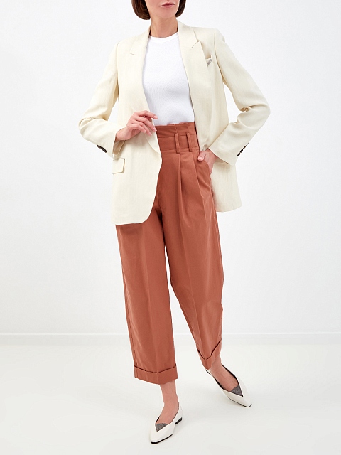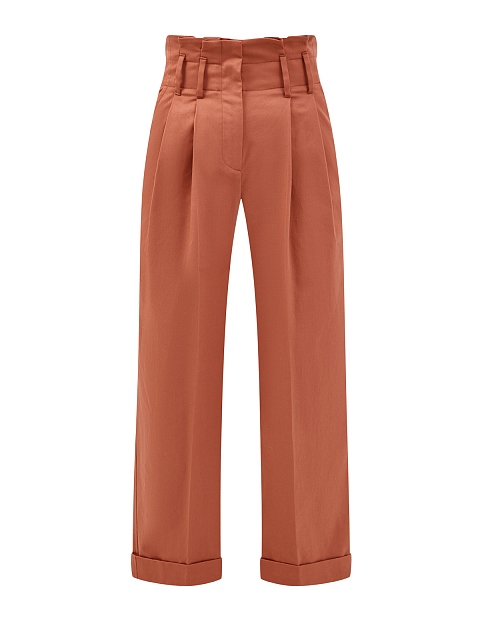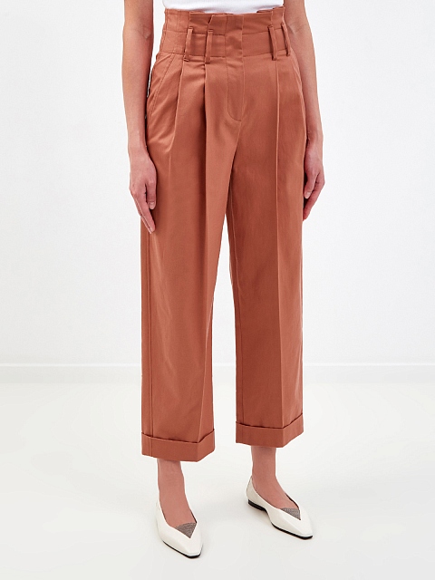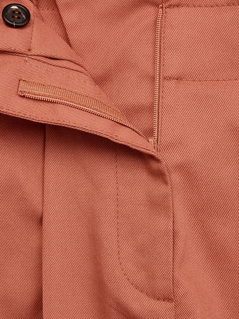 Лаконичные женские брюки от Brunello Cucinelli выполнены в приглушенном коралловом оттенке. Для создания модели был выбран хлопковый габардин с характерным диагональным переплетением волокон. Высокая посадка с заложенными от линии талии складками визуально структурирует силуэт и не стесняет движений. Детали: диагональные прорезные карманы на передних планках и карманы с бортами на спинке, застежка на молнию и пуговицу, широкие отвороты. Сделано в Италии.