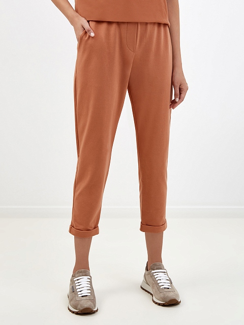 Укороченные брюки из эластичного футера с декором Мониль