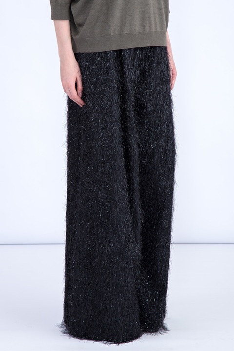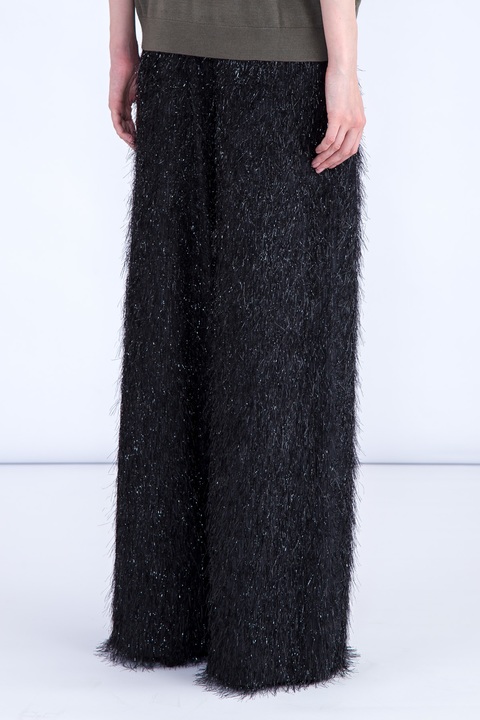 Эффектные женские брюки Brunello Cucinelli расклешенные от бедра изготовлены из хлопка и шелка в технике филькупе Ethnic, украшенной бахромой по всей поверхности со вплетенными металлизированными нитями. Модель с посадкой на талии на притачном поясе с потайным крючком и молнией. Сделано в Италии.