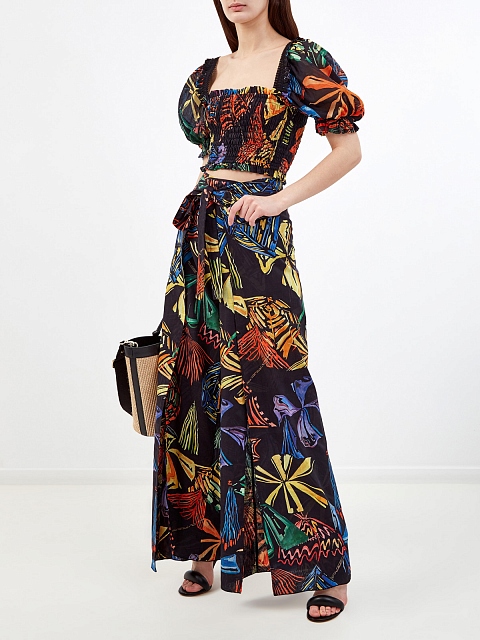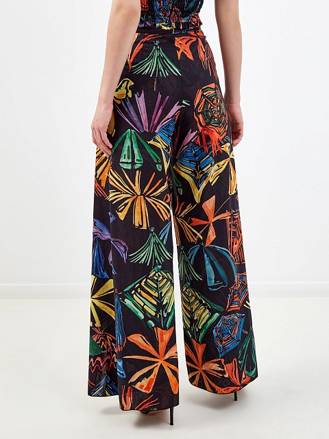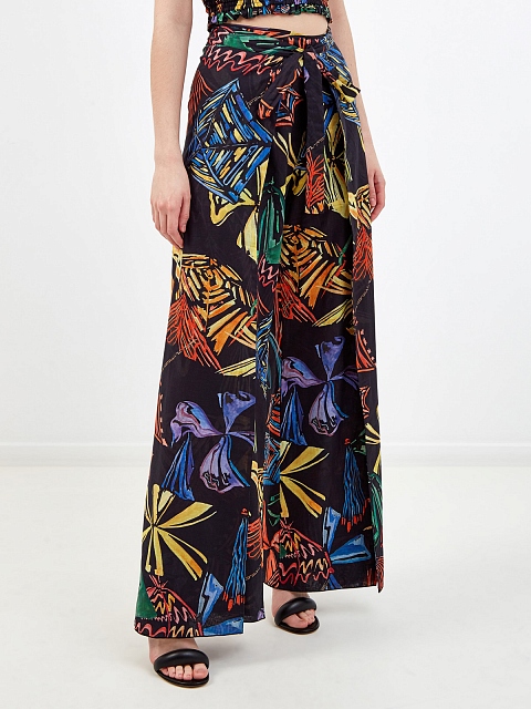 Высокие брюки Agnes Pareo от Charo Ruiz Ibiza вошли в круизную коллекцию Ritmo. Модель из тонкого струящегося хлопка дополнена сложным поясом в стиле парео, который образует женственный силуэт с разрезами. Яркий тропический принт подчеркивает расслабленный стиль изделия.