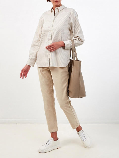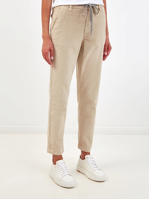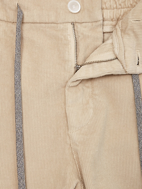 Брюки из хлопкового вельвета с поясом на кулиске